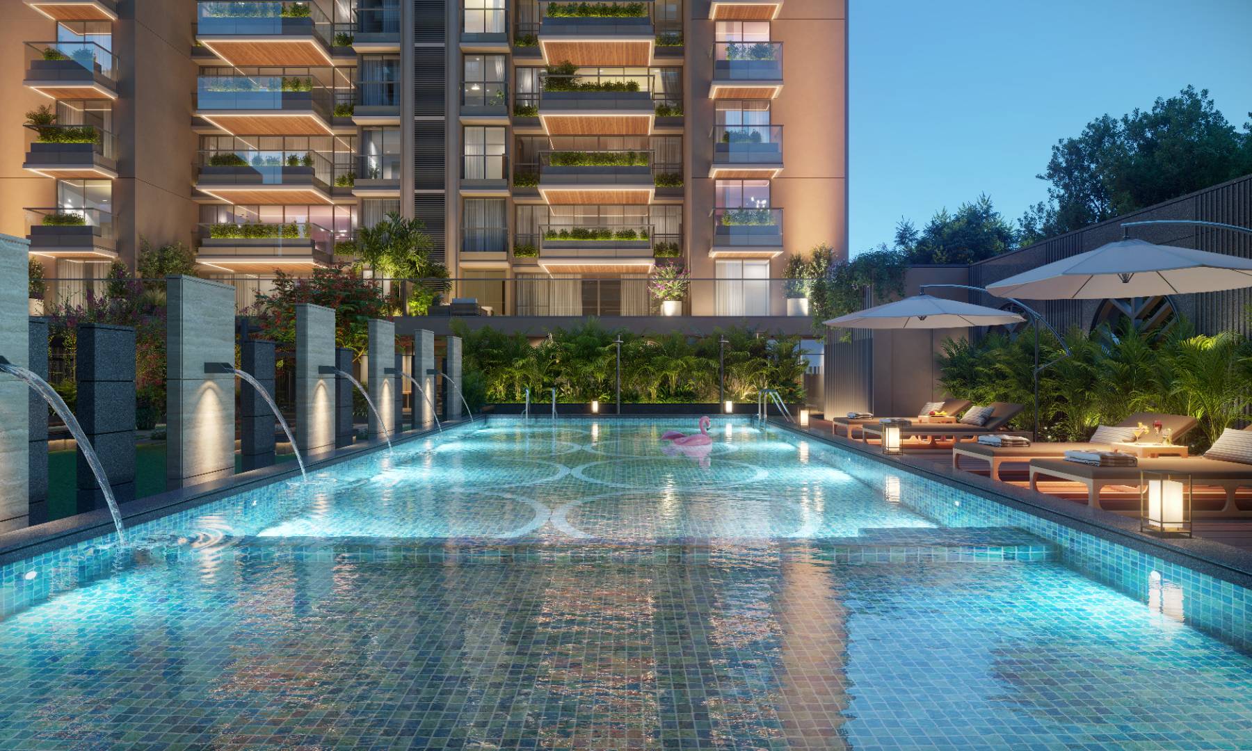 Attached washroom with concealed Plumbing, walls cladding with designer series tiles, with good quality sanitary wares and CP fittings